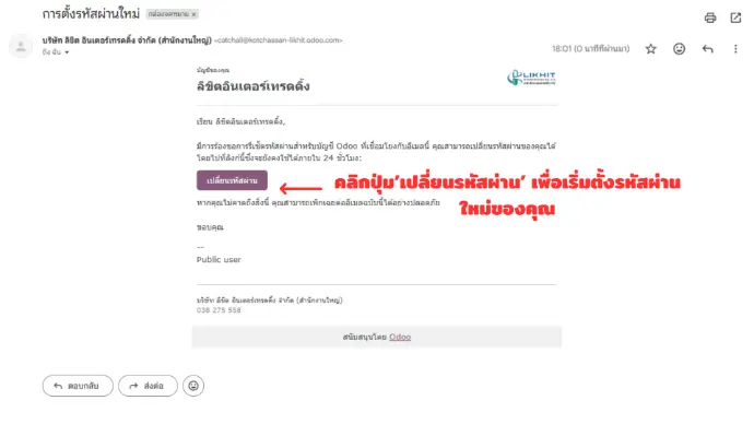 ขั้นตอนที่ 3 เข้าไปที่อีเมลของคุณเพื่อหาข้อความที่ได้รับจาก บริษิท ลิขิต อินเตอร์เทรดดิ้ง จำกัด จากนั้นคลิกปุ่ม"เปลี่ยนรหัสผ่าน"